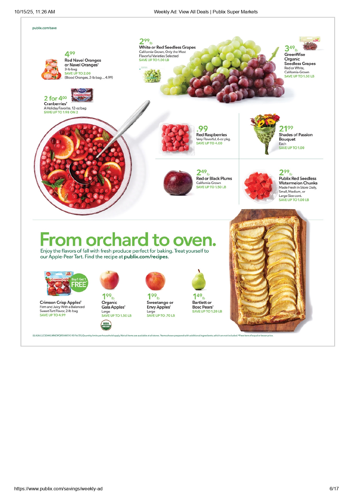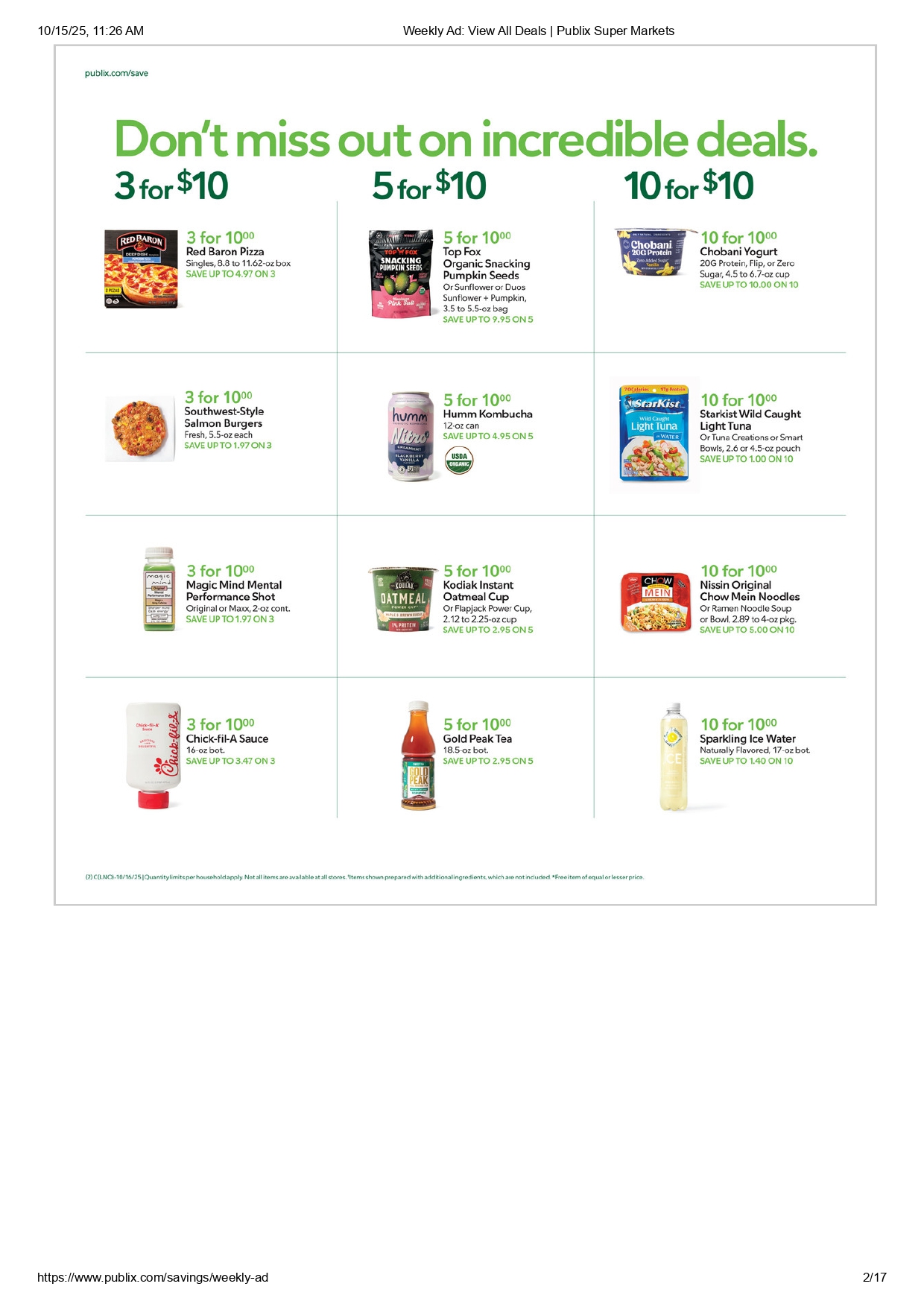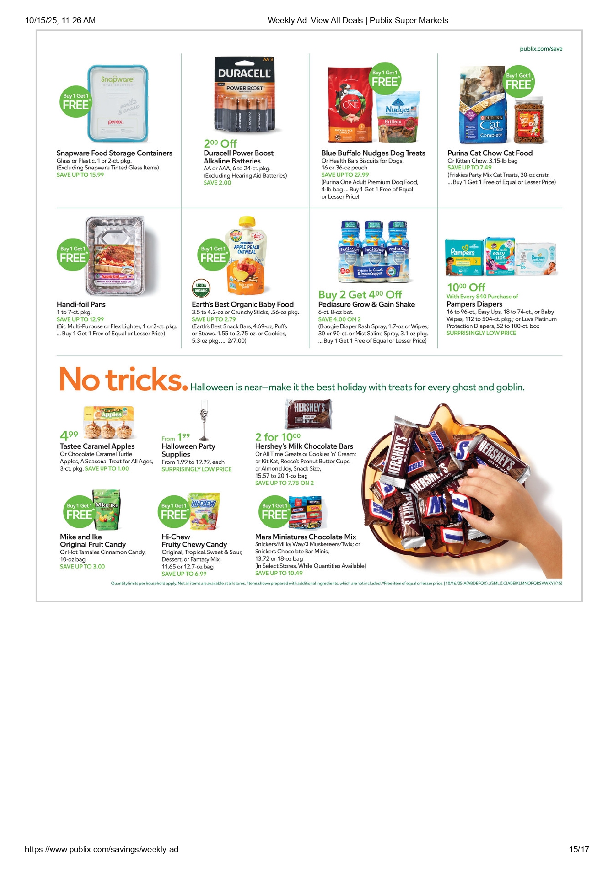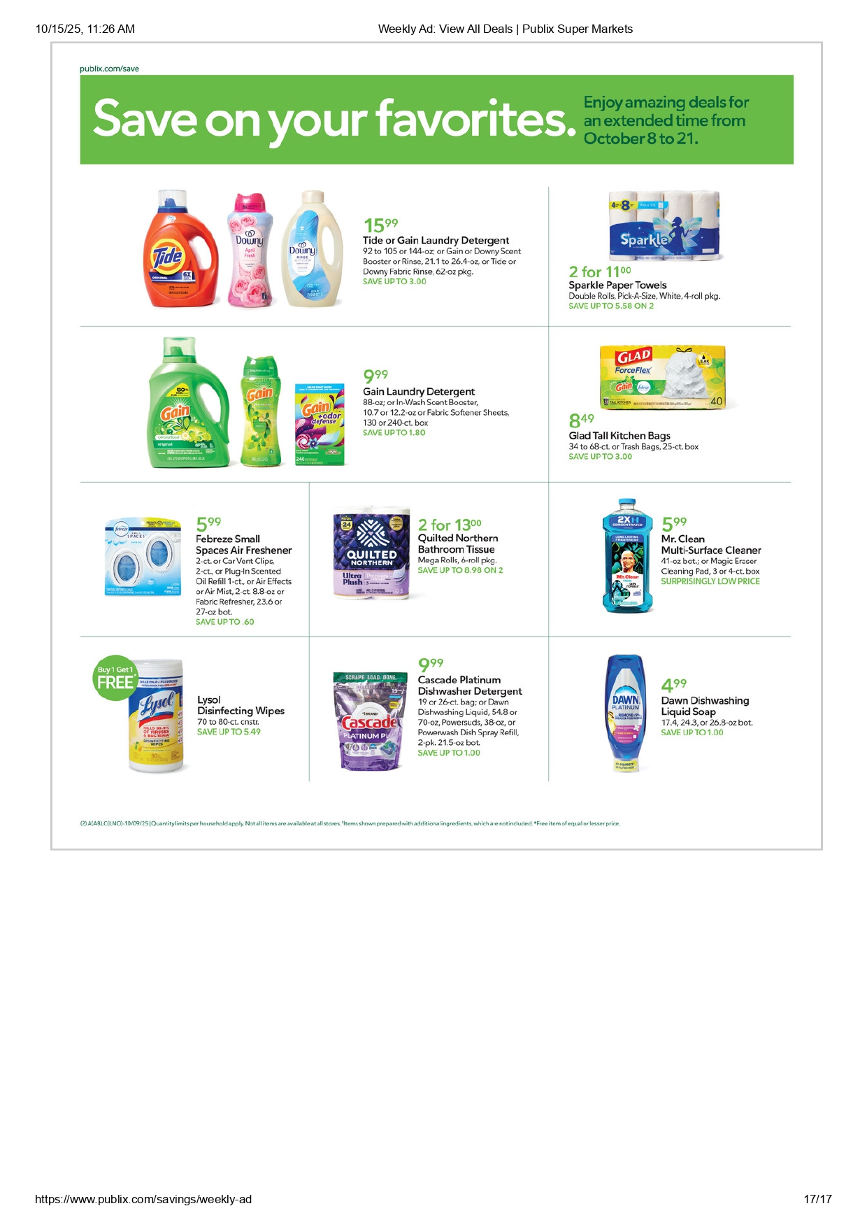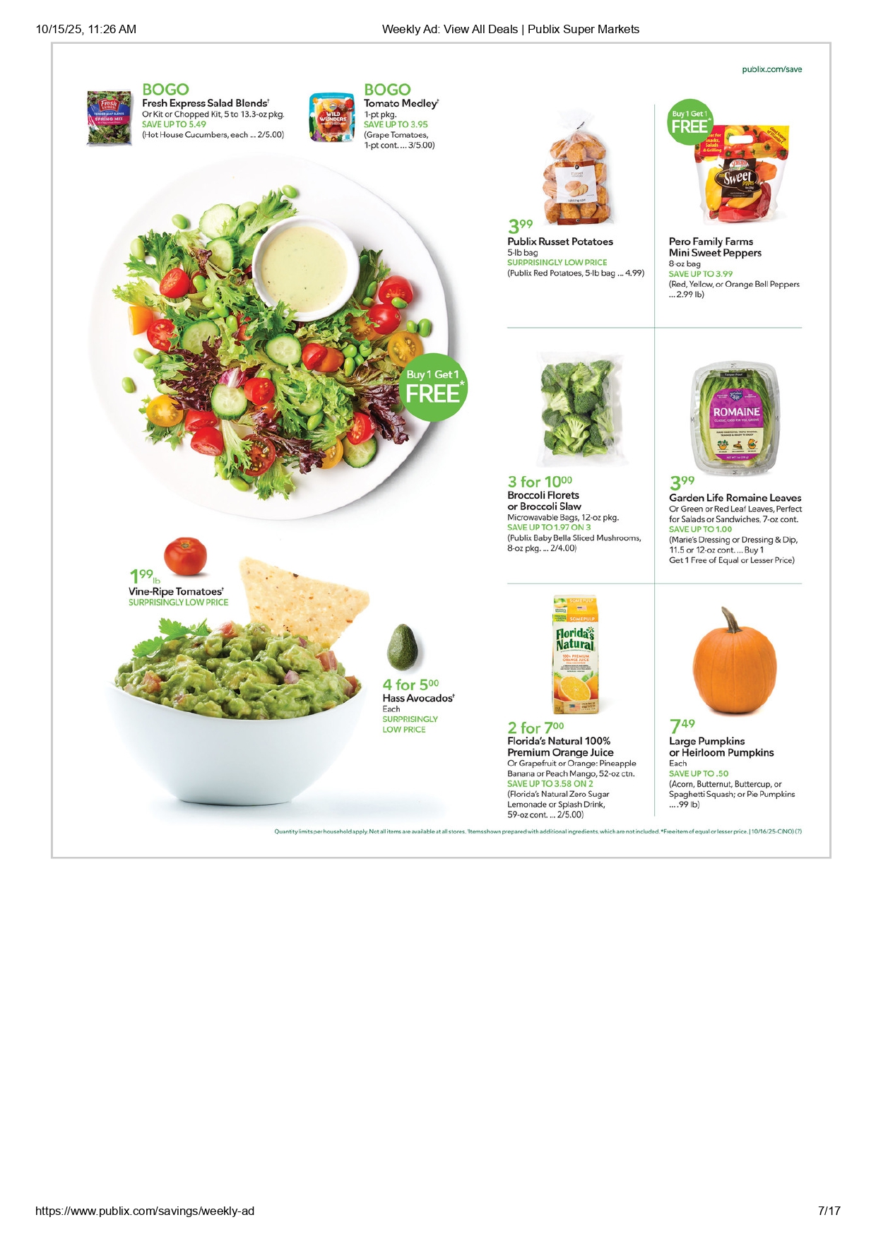 Browse the current Publix Weekly Ad 10/15/2025 - 10/21/2025, and get a plenty of offers to save on grocery and home.What is Publix? Among the highlights this week: